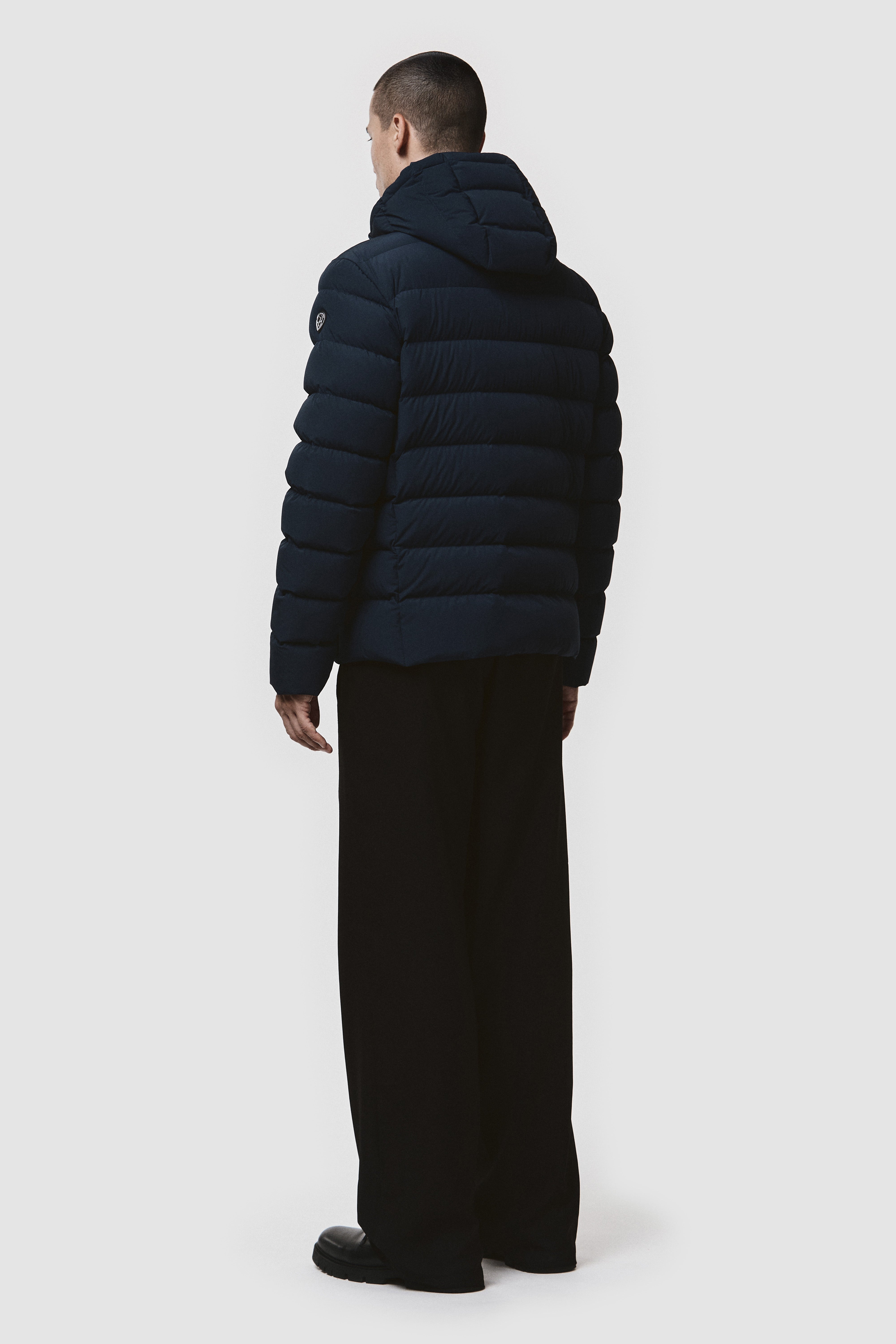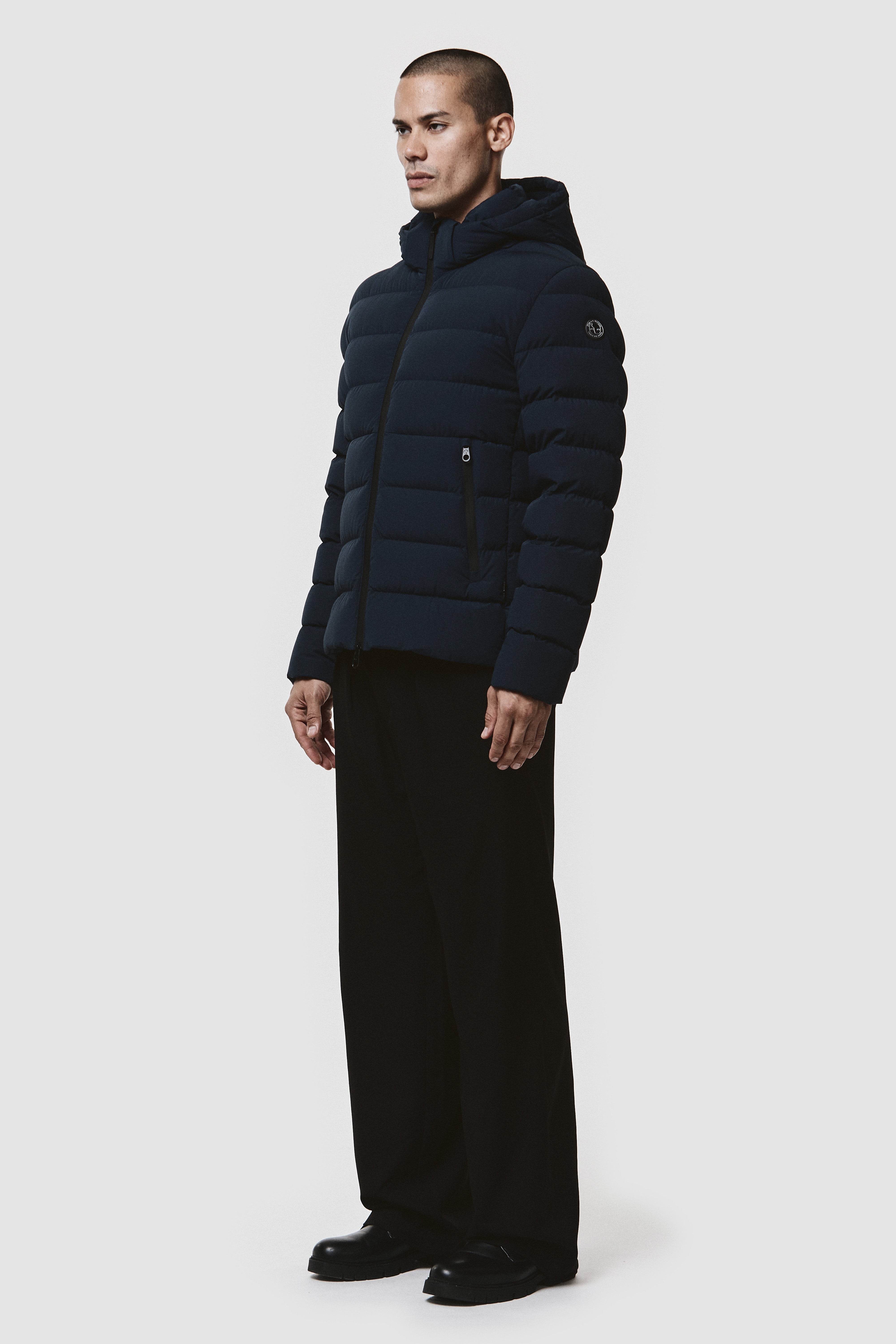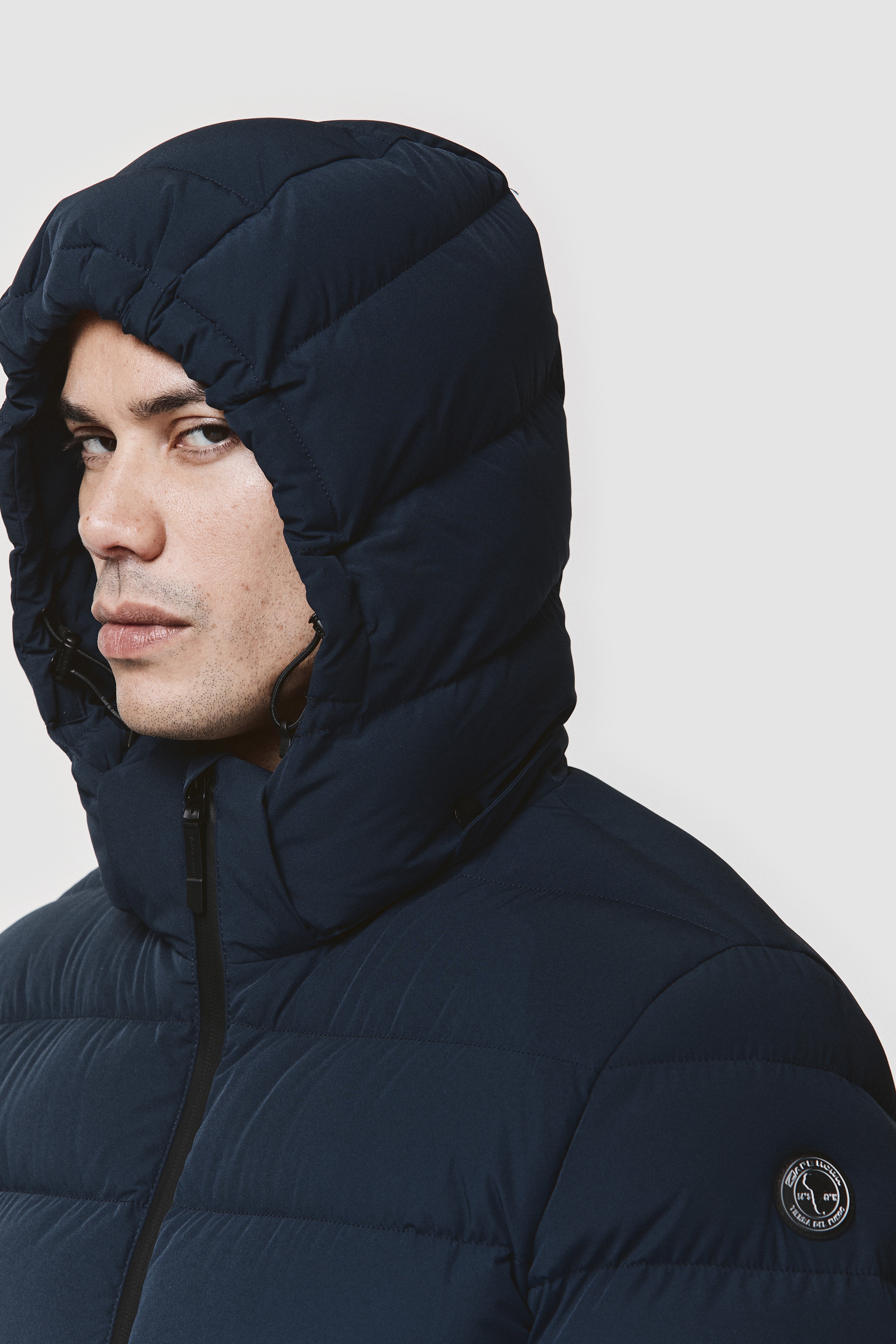 Men's matte fabric down jacket, designed to offer warmth, comfort, and freedom of movement. Detachable and adjustable hood with internal drawstring, front zip, and waterproof pockets to withstand wind and light rain. Perfect in the city, reliable when traveling—every day, without compromise.