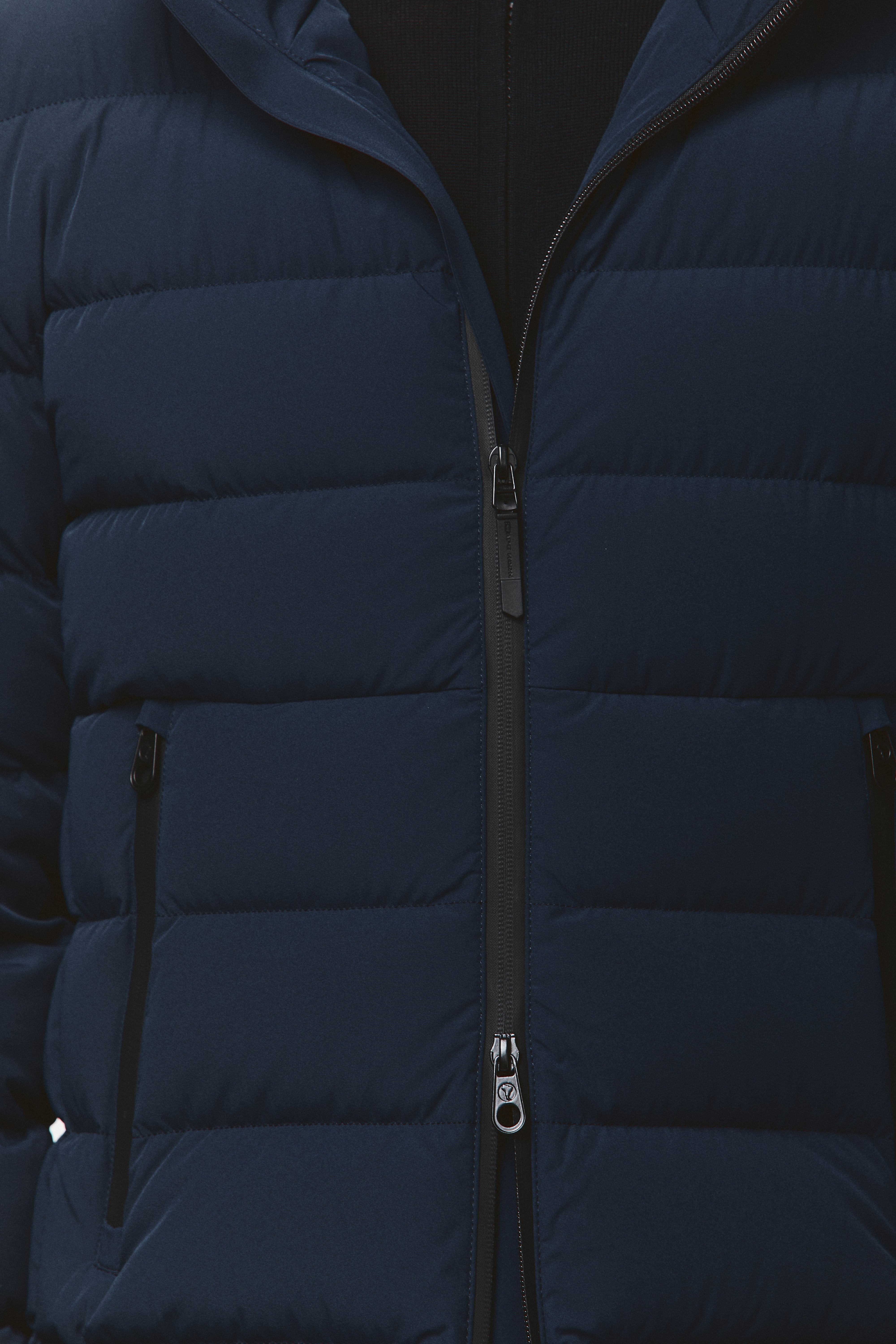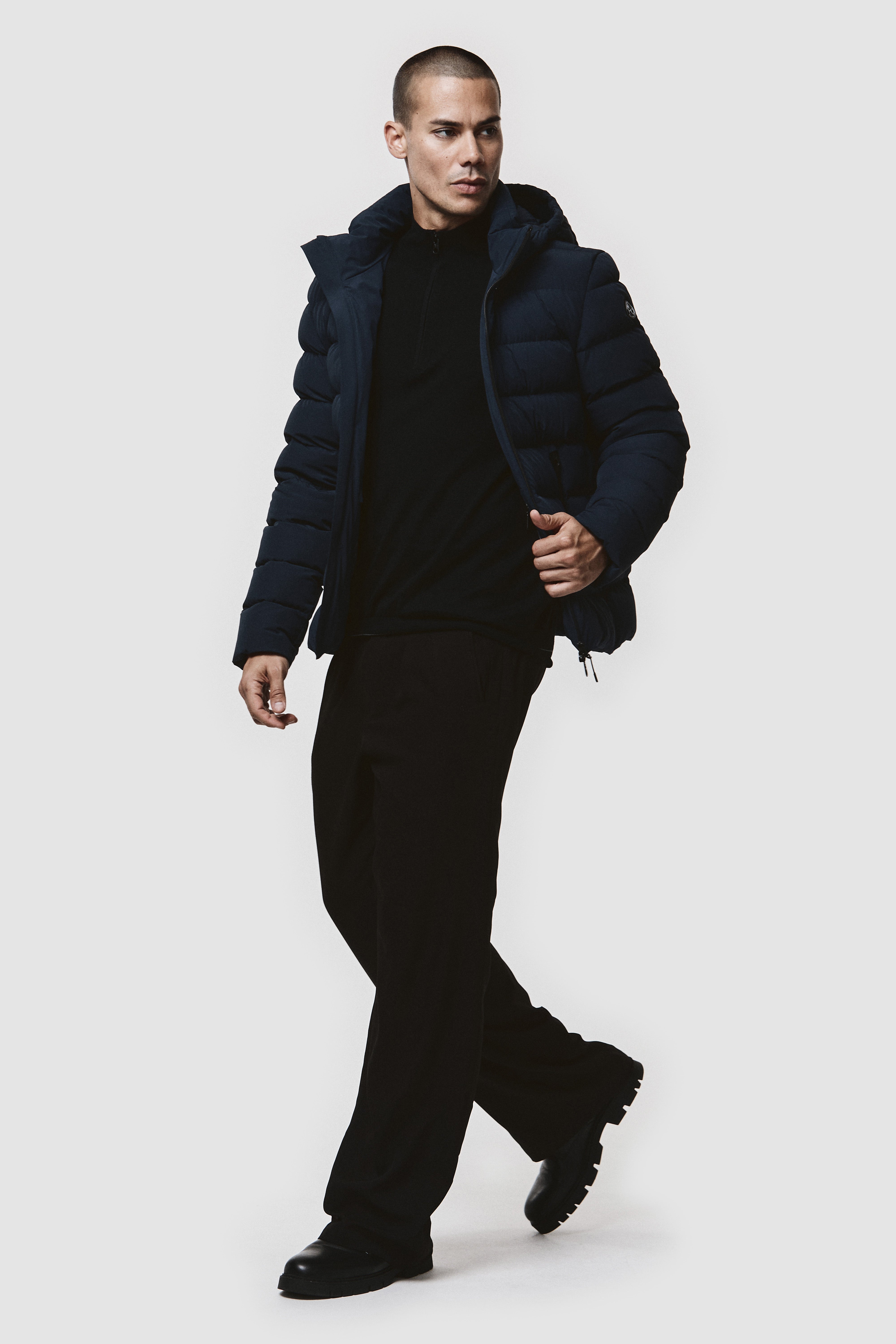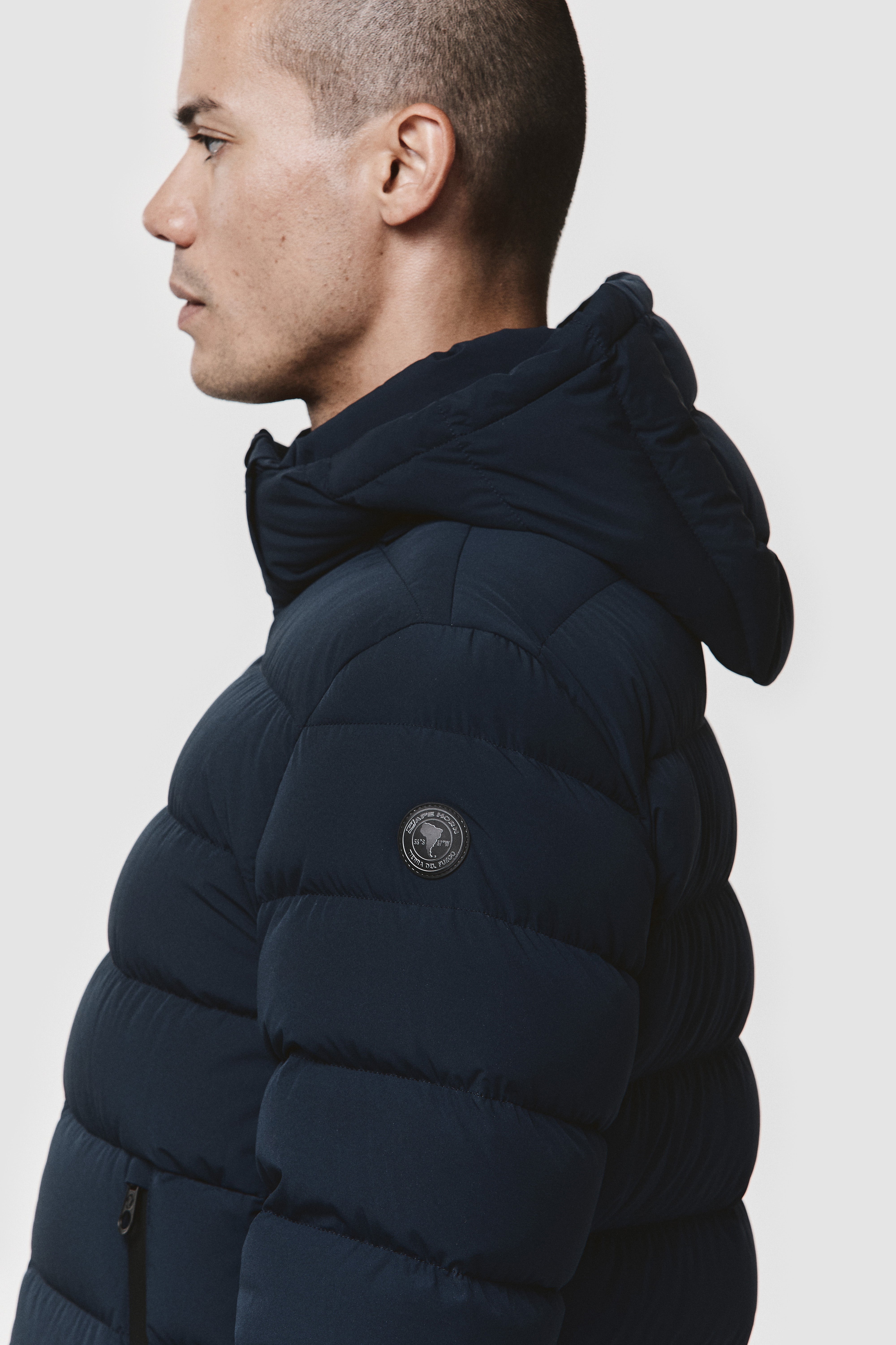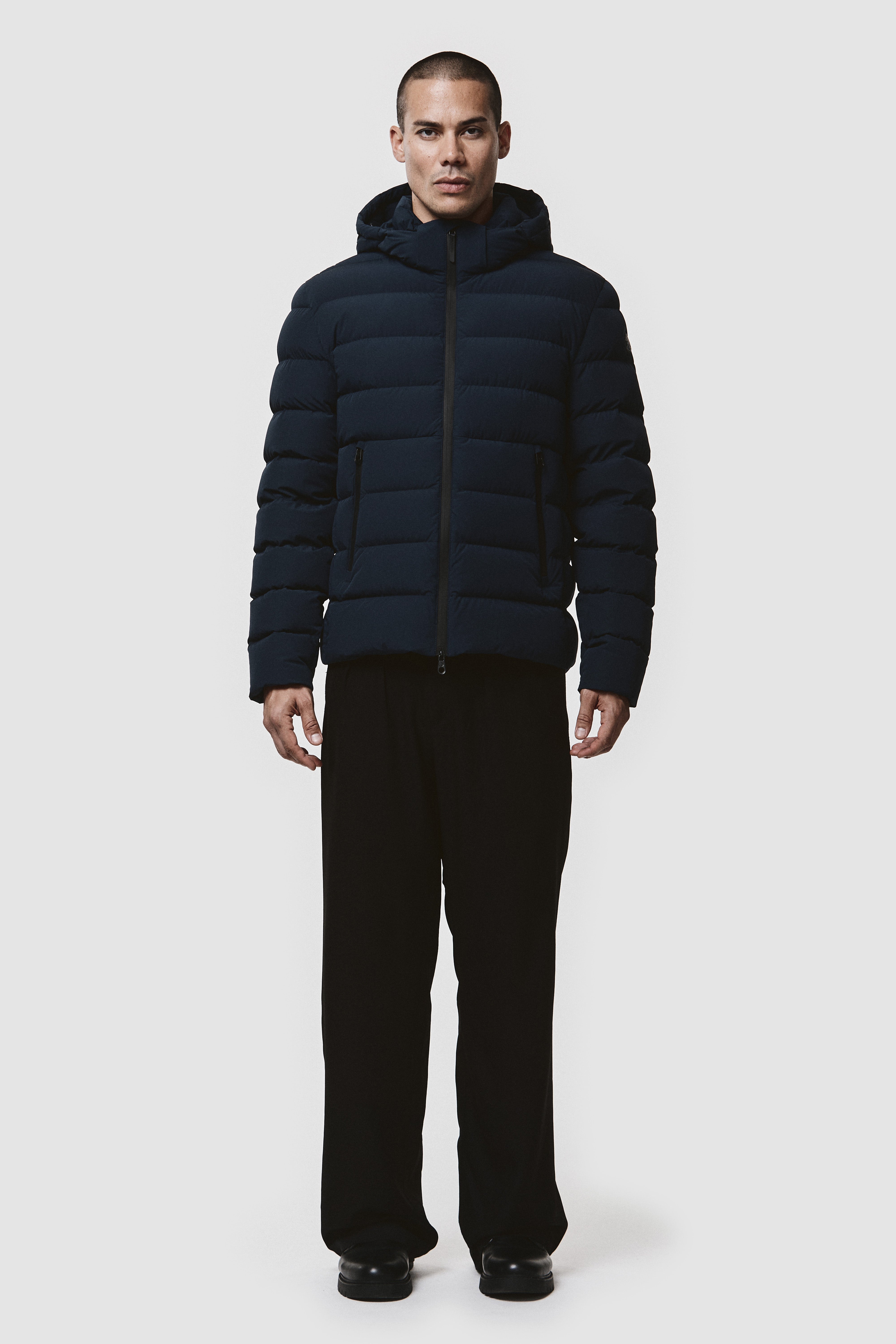 Men's matte fabric down jacket, designed to offer warmth, comfort, and freedom of movement. Detachable and adjustable hood with internal drawstring, front zip, and waterproof pockets to withstand wind and light rain. Perfect in the city, reliable when traveling—every day, without compromise.