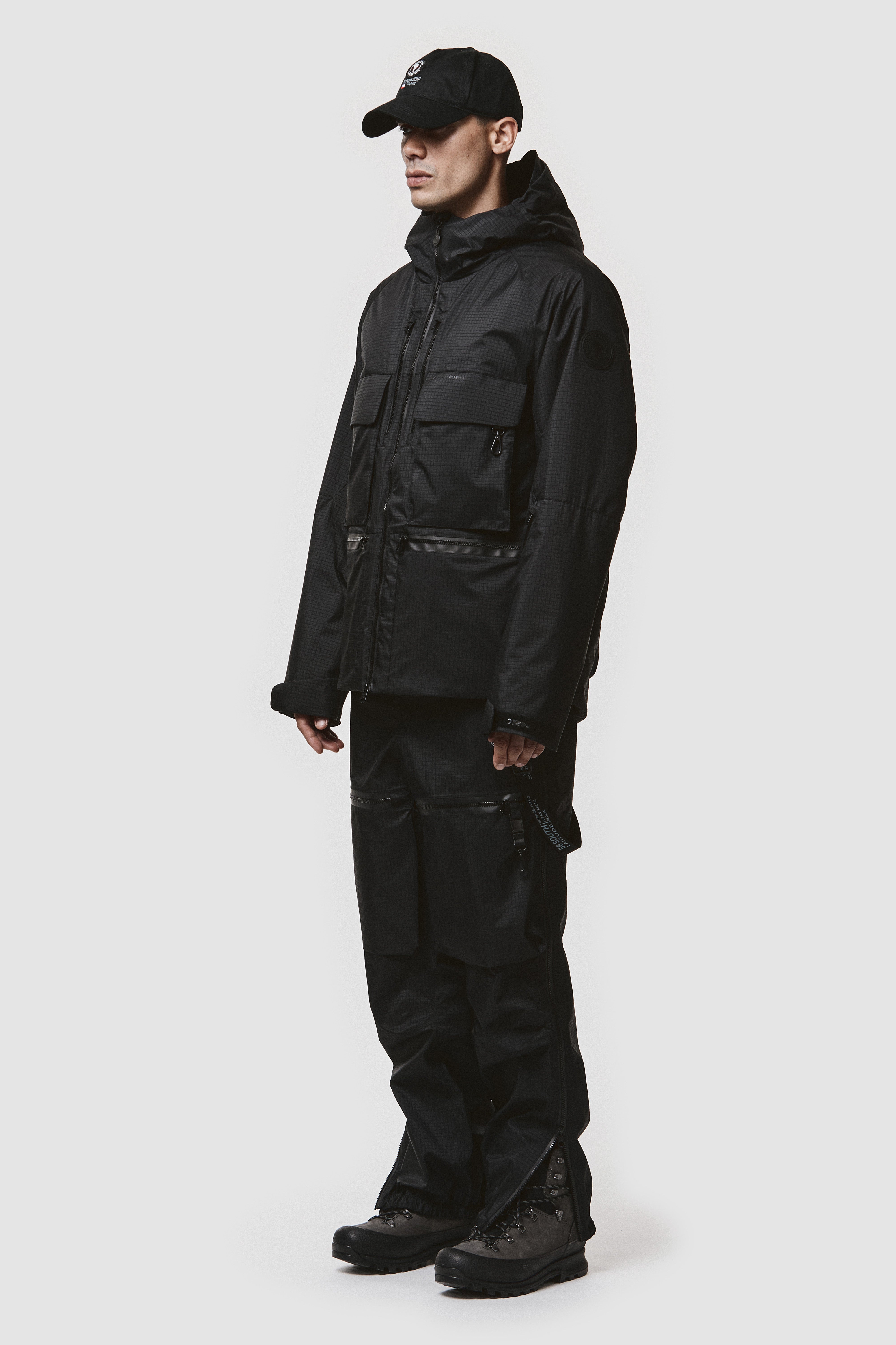 Giacca lunga da uomo in tessuto ripstop, progettata per offrire elevate prestazioni tecniche e protezione fino a -10°C. Il cappuccio fisso antipioggia e le cuciture completamente termonastrate assicurano impermeabilità anche nelle condizioni più difficili. La chiusura frontale prevede zip a doppio cursore, mentre le sei tasche anteriori - con zip o velcro - offrono capienza e accessibilità. Una tasca supplementare con zip è posizionata sulla manica sinistra per oggetti da tenere a portata di mano. I polsini si regolano tramite velcro, mentre una coulisse interna consente di adattare il fondo giacca. All'interno, due tasche portadocumenti e un sistema di bretelle permette di indossare il capo anche a spalle libere. Appartenente alla capsule Laboratorio, questa giacca è pensata per un utilizzo intenso e e consapevole, dove ogni dettaglio risponde a una funzione precisa.