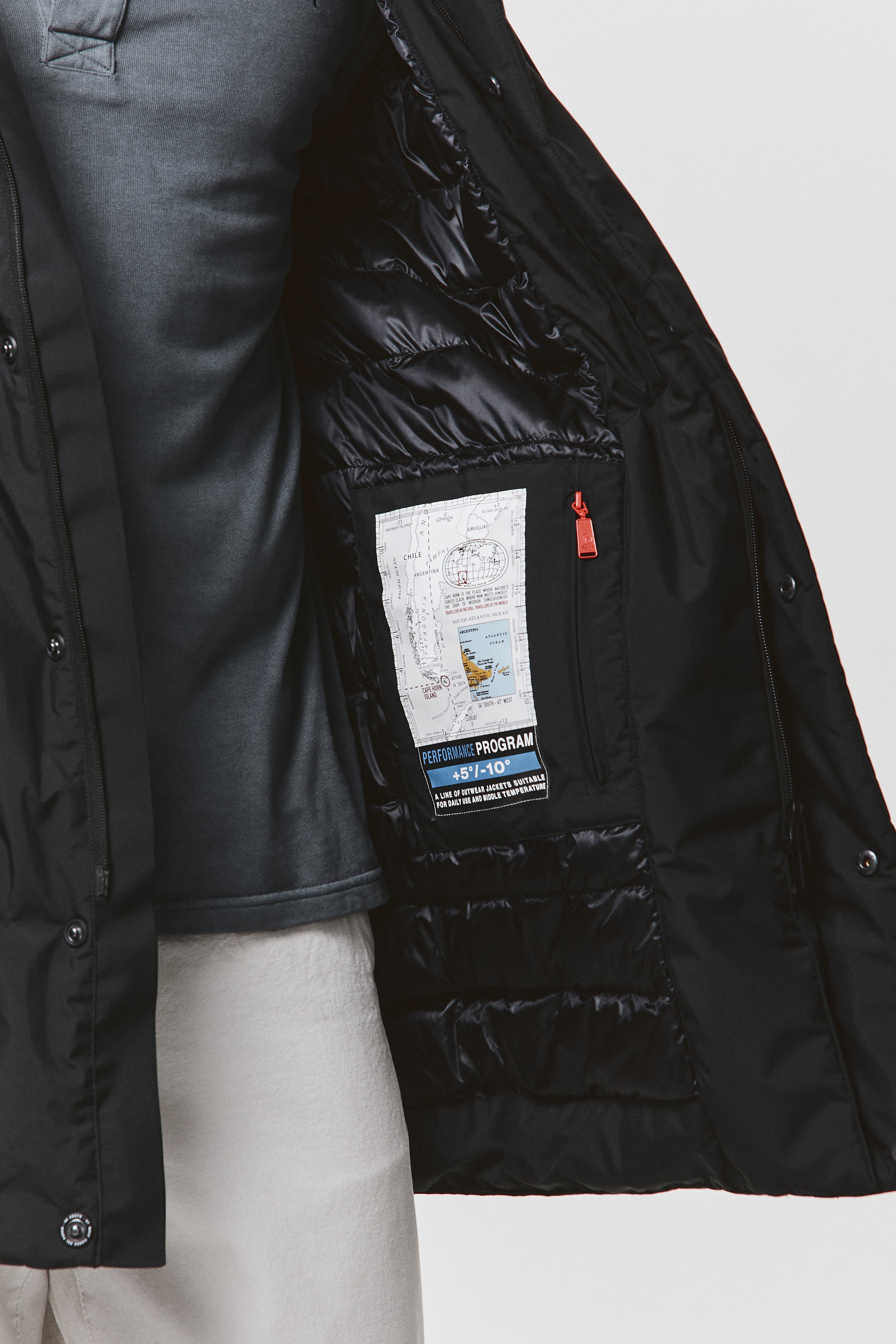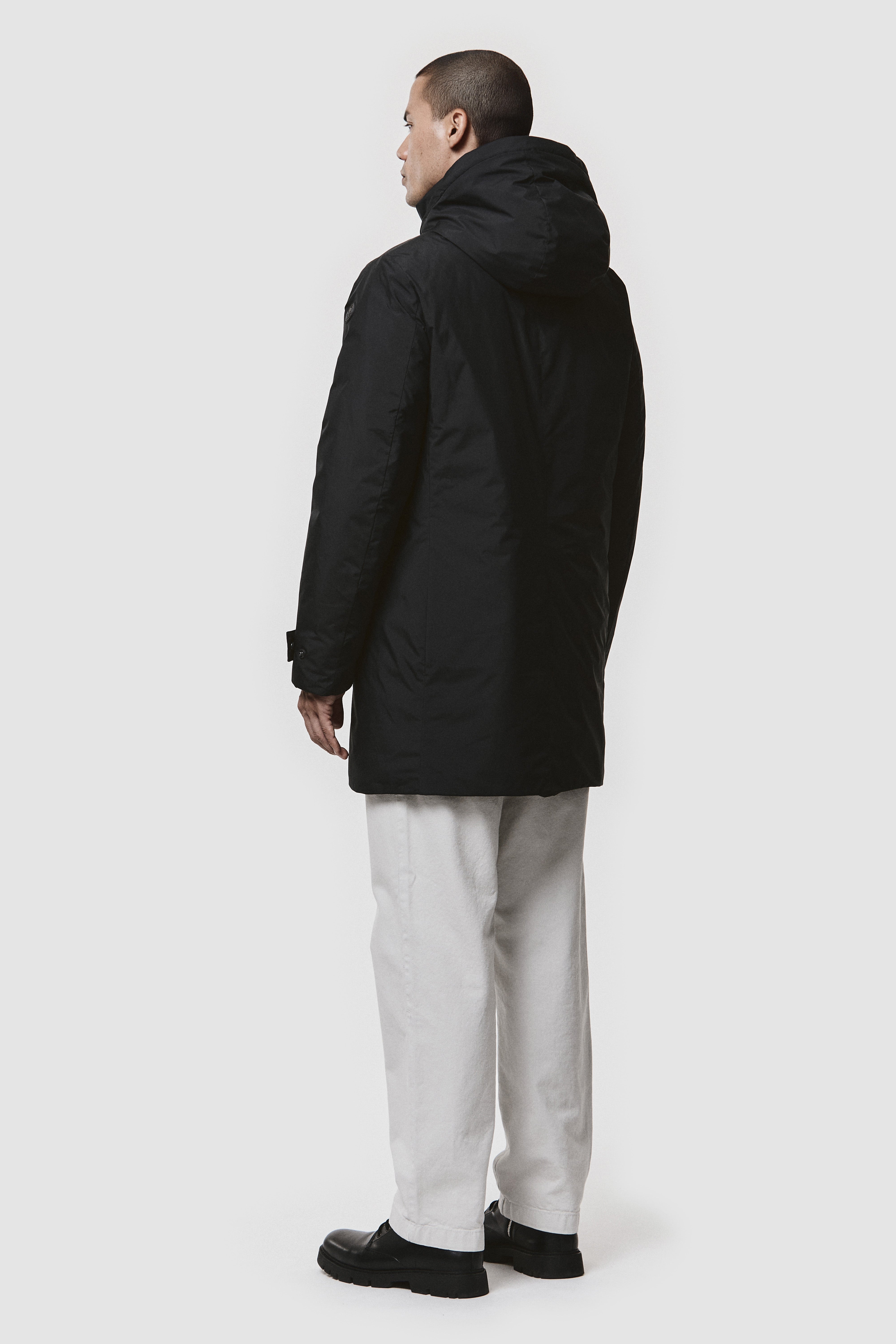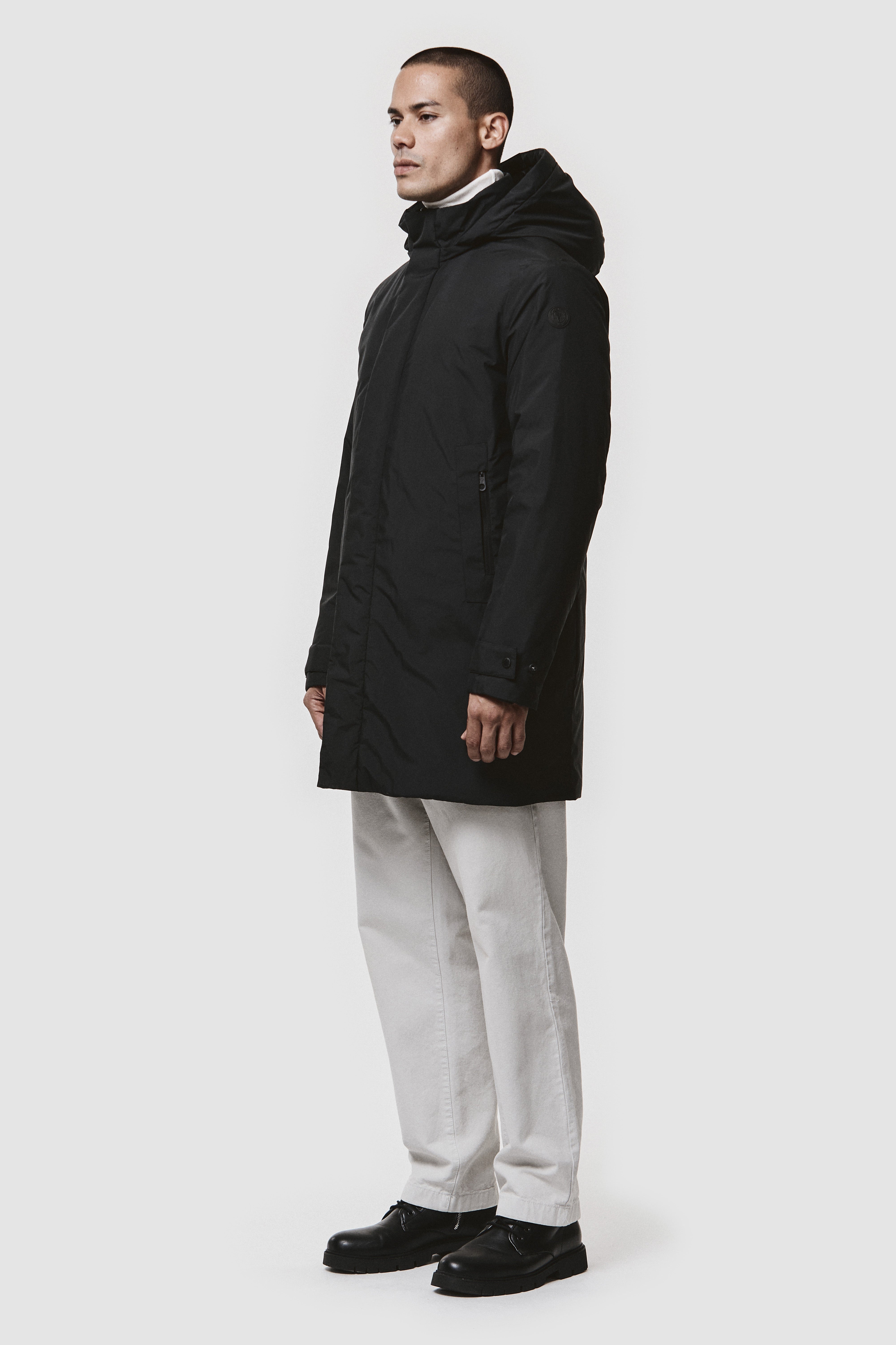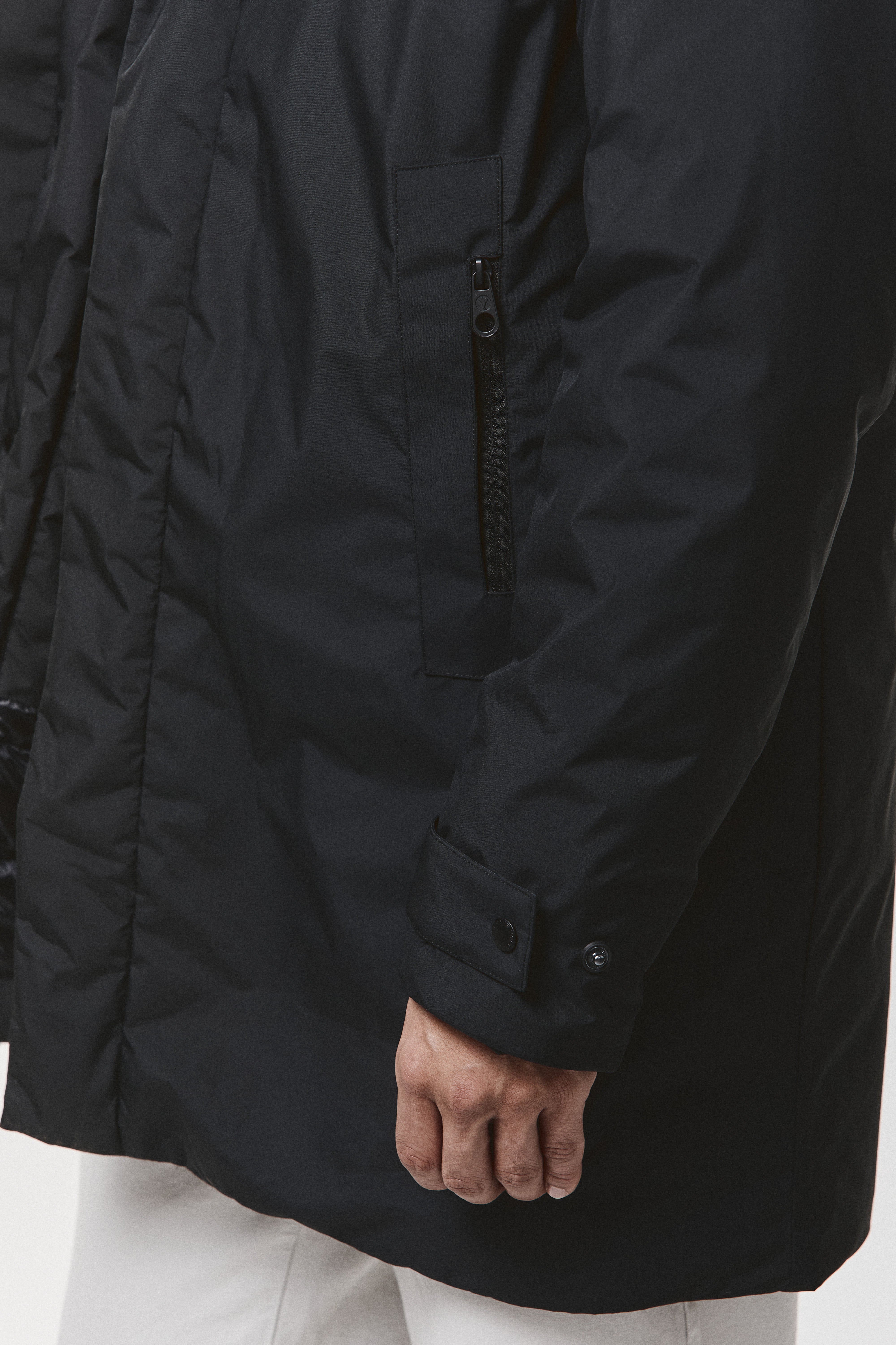 Giacca da uomo imbottita in piuma naturale per garantire comfort termico e libertà di movimento fino a -10°C. La chiusura frontale con zip a spirale è coperta da una pattina con bottoni, pensata per offrire maggiore protezione nei climi più rigidi. Cappuccio staccabile con coulisse regolabile, tasche laterali con zip e polsini adattabili per una vestibilità precisa. All'interno, due tasche portadocumenti rendono il capo pratico anche negli spostamenti quotidiani. Materiali performanti, stile urbano pensato per l'inverno.