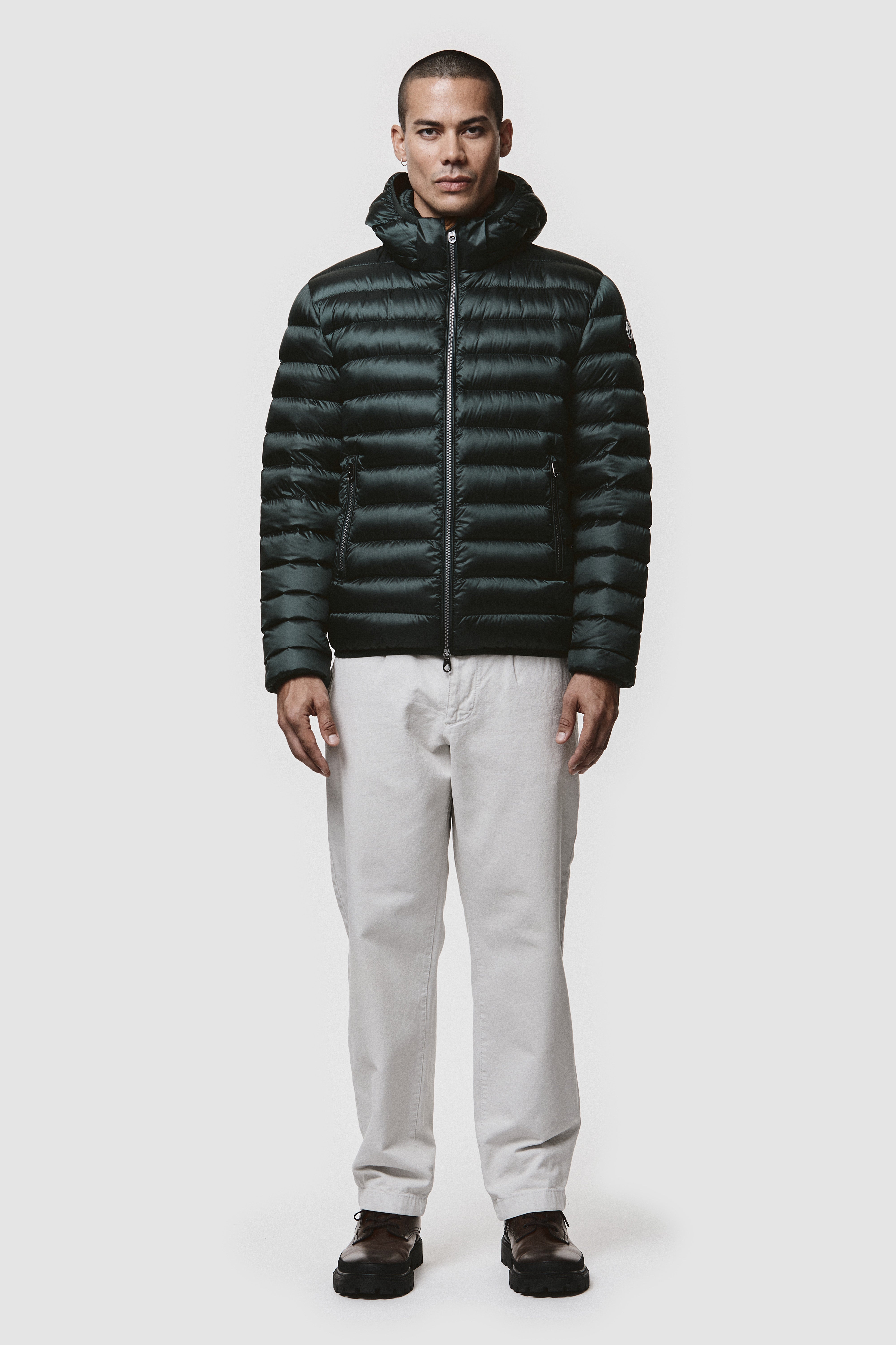 Piumino da uomo dallo stile iconico e dalle prestazioni affidabili. Il tessuto lucido gli conferisce un carattere brillante e sempre nuovo. L'imbottitura in piuma naturale ti offre protezione dal freddo fino a -10°C, mantenendo leggerezza e libertà nei movimenti. Il cappuccio staccabile e i dettagli elastici su fondo, polsi e cappuccio assicurano una vestibilità precisa, pensata per accompagnarti nel quotidiano e nei viaggi. Tasche interne porta-documenti e linee pulite completano un capo che unisce funzionalità, comfort e presenza. Perfetto in città, essenziale ovunque.